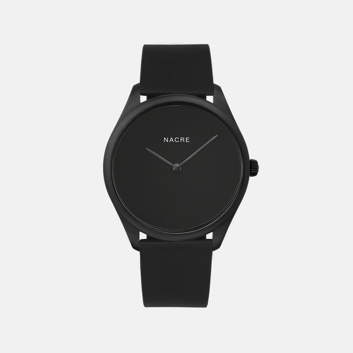 A minimal, modernist watch with a black, sandblasted dial. Paired with a vegetable-tanned, Italian leather band.
